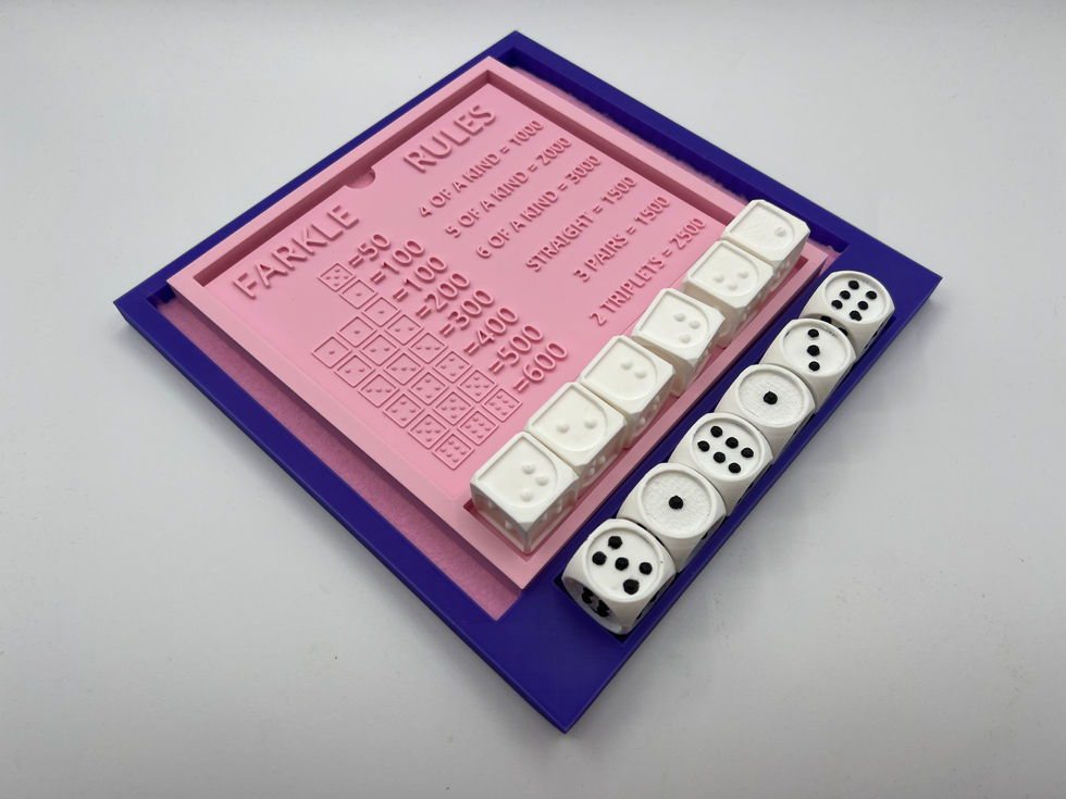 I created an accessible dice game fit with a Traditional Set and a Braille Set. Both sets include their respective rules and dice.